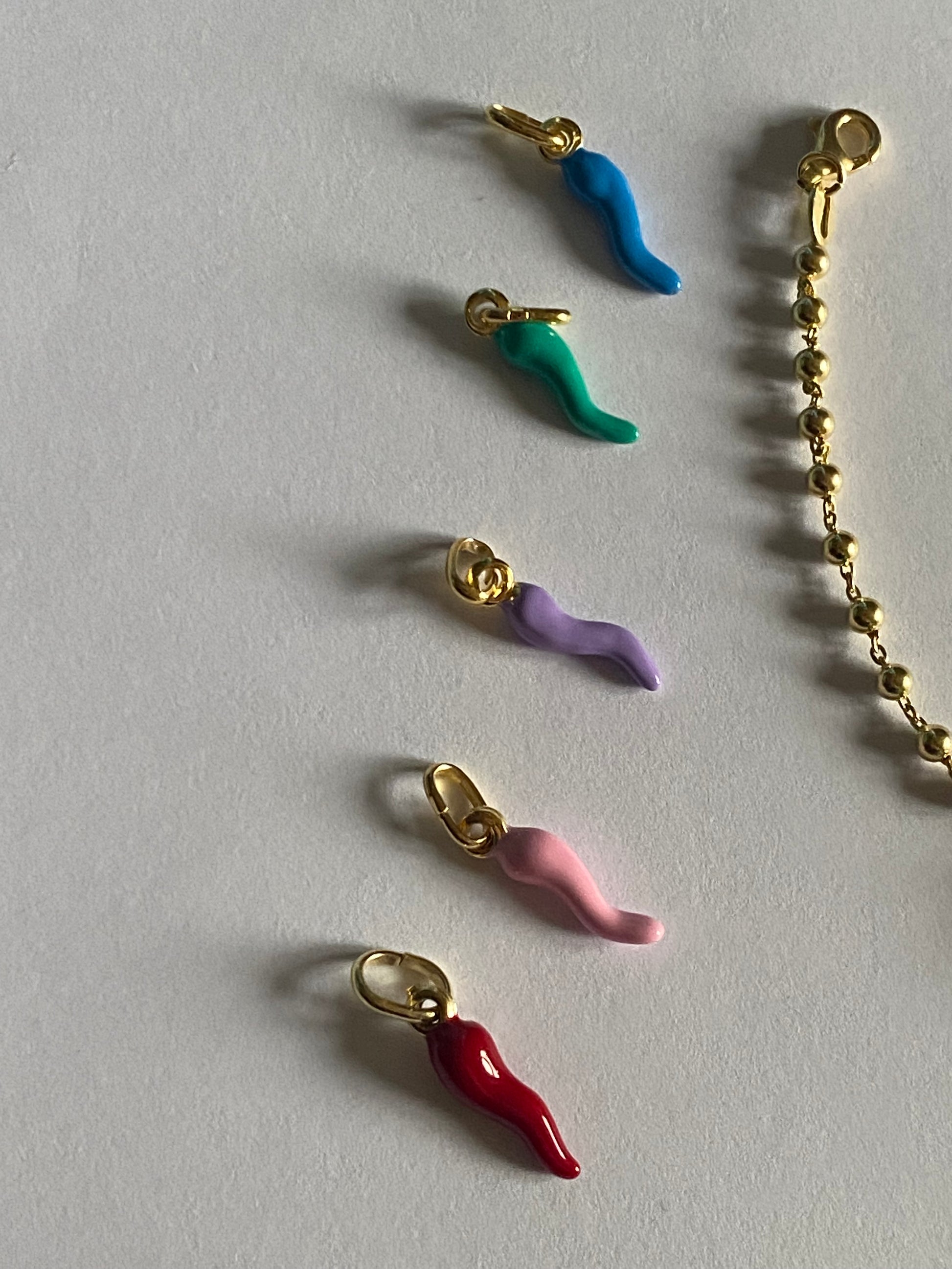 Bracciale con sfere in argento 925 dorato, Sagoma della Calabria e cornetto Portafortuna.