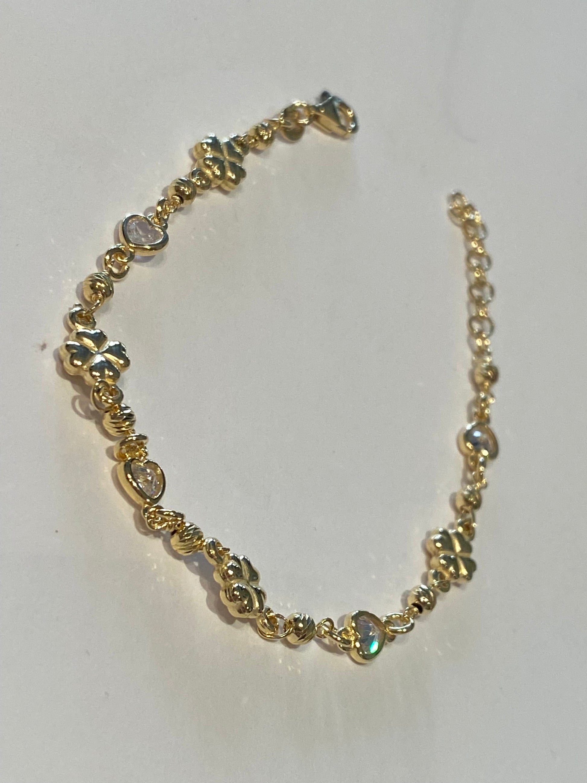 Bracciale con Quadrifogli e cuoricini in Argento 925 bagnato oro.
