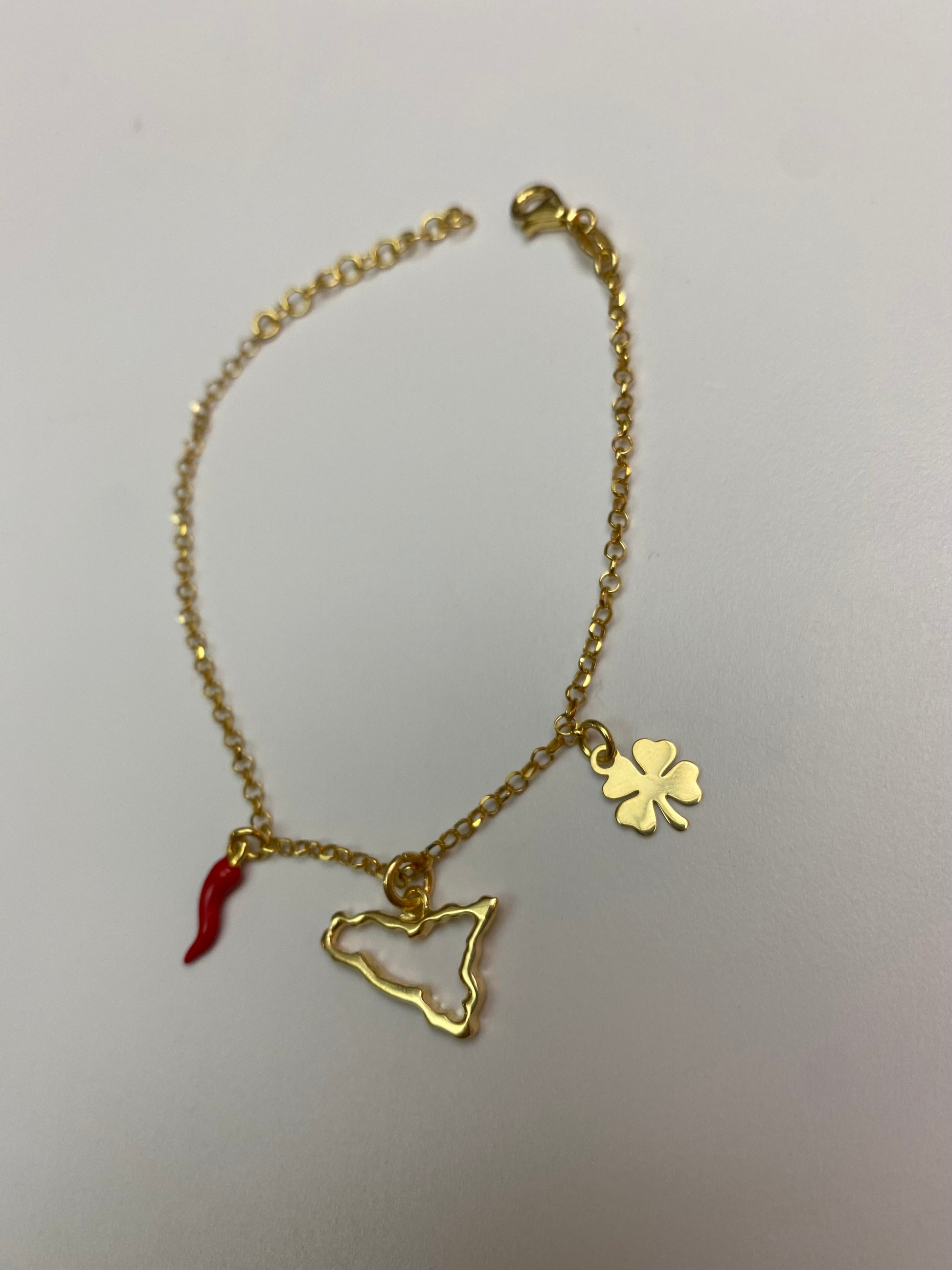 Bracciale in argento 925 bagnato Oro con tre ciondoli simbolici.