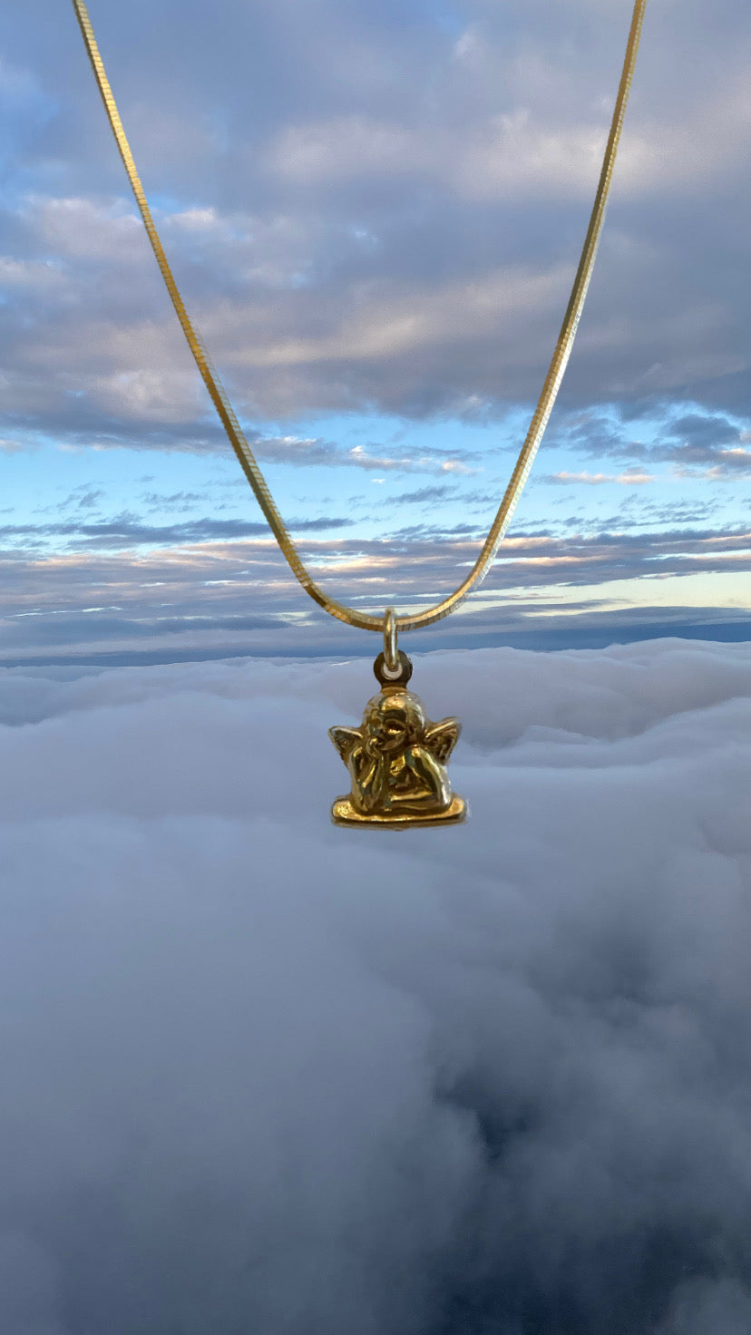 Collana coda di topo con maglia lucida a forma di coda di topo realizzata in Argento 925 bagnato oro con ciondolo ispirato all’Angelo di Raffaello: un piccolo abbraccio da portare sempre con te.