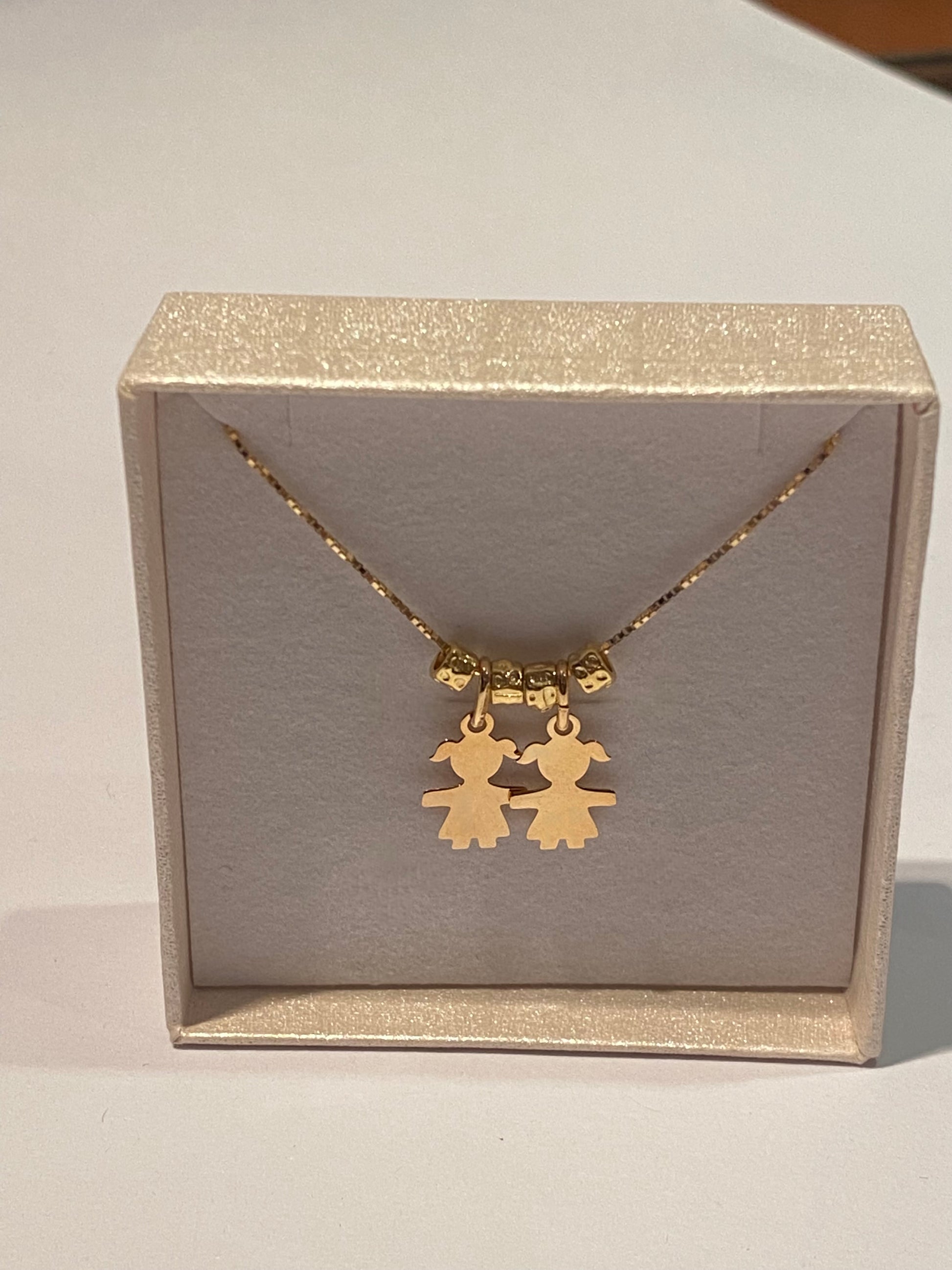 Collana con due bimbe e pepite martellate in argento 925 galvanica oro