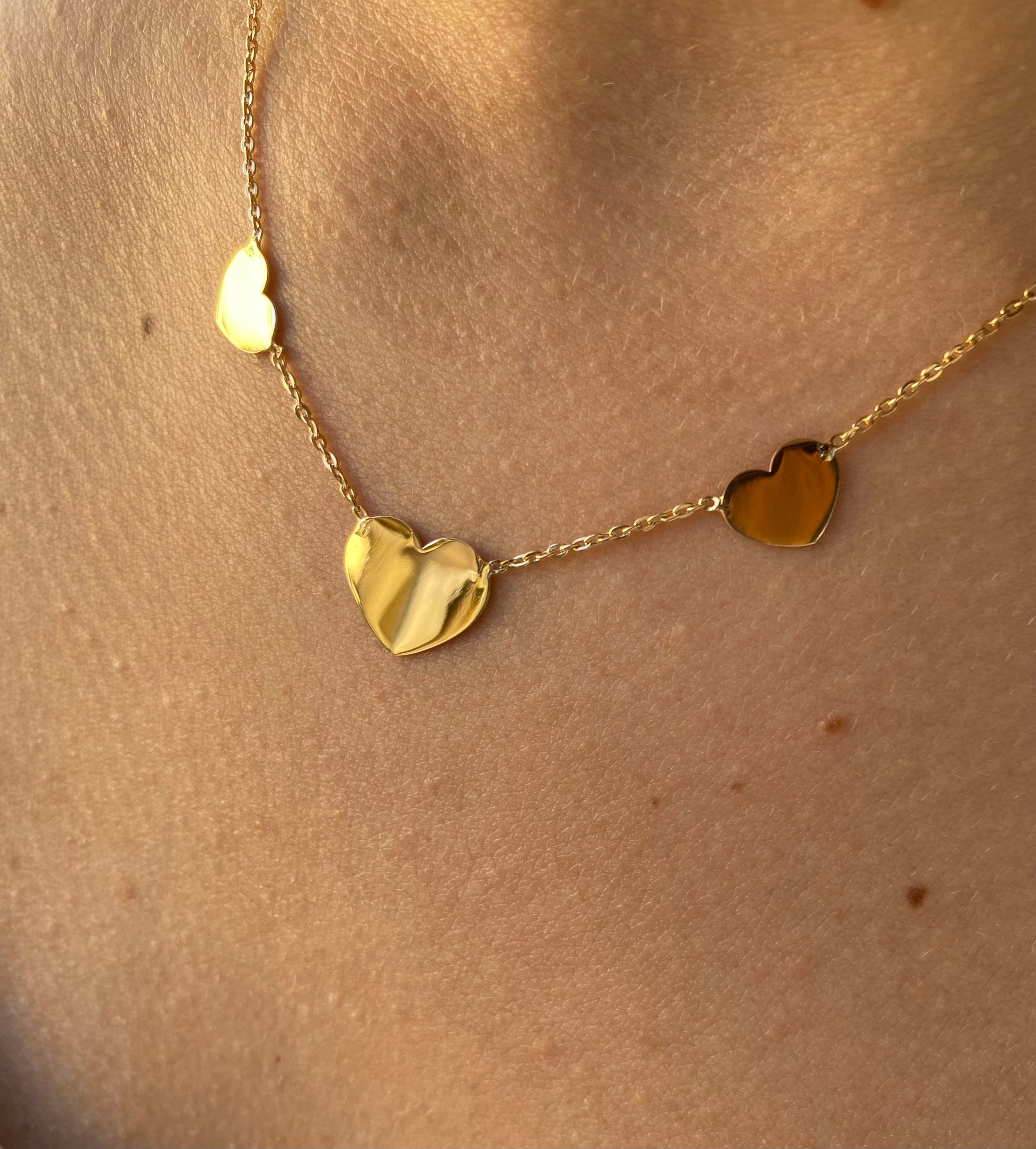 Girocollo con tre cuoricini in argento 925 bagnato oro.