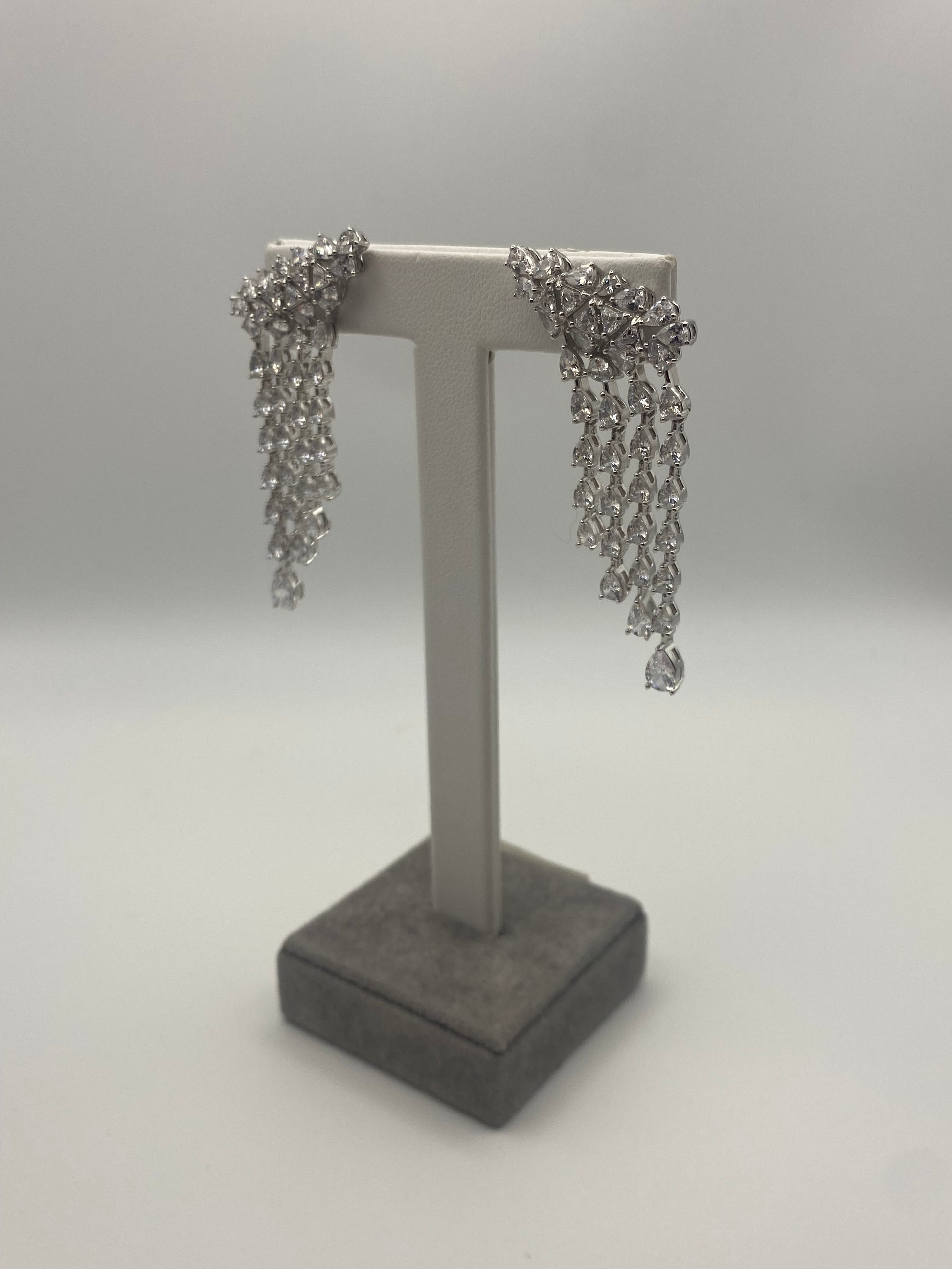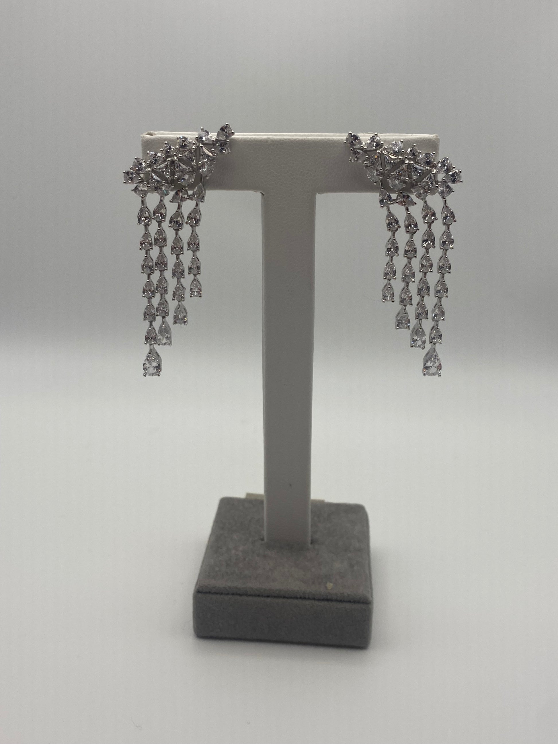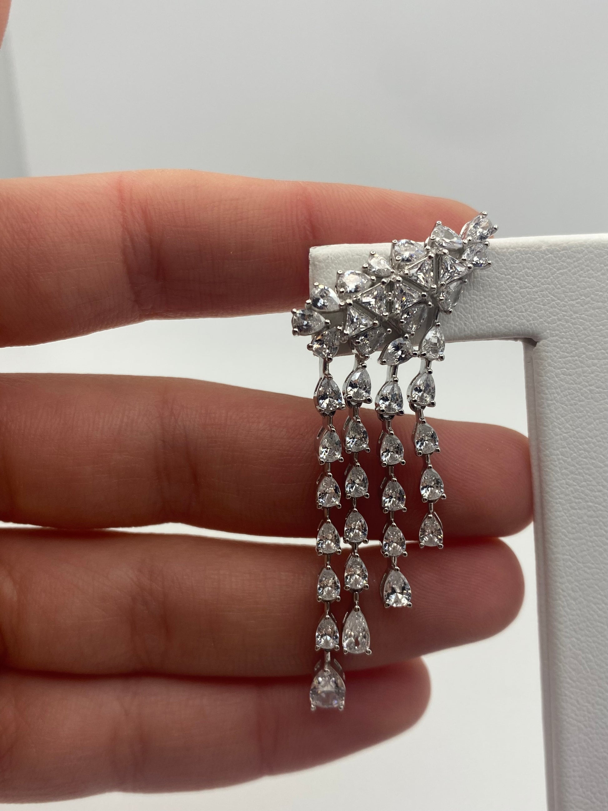 Orecchini pendenti a cascata in argento 925 e zirconi taglio goccia.