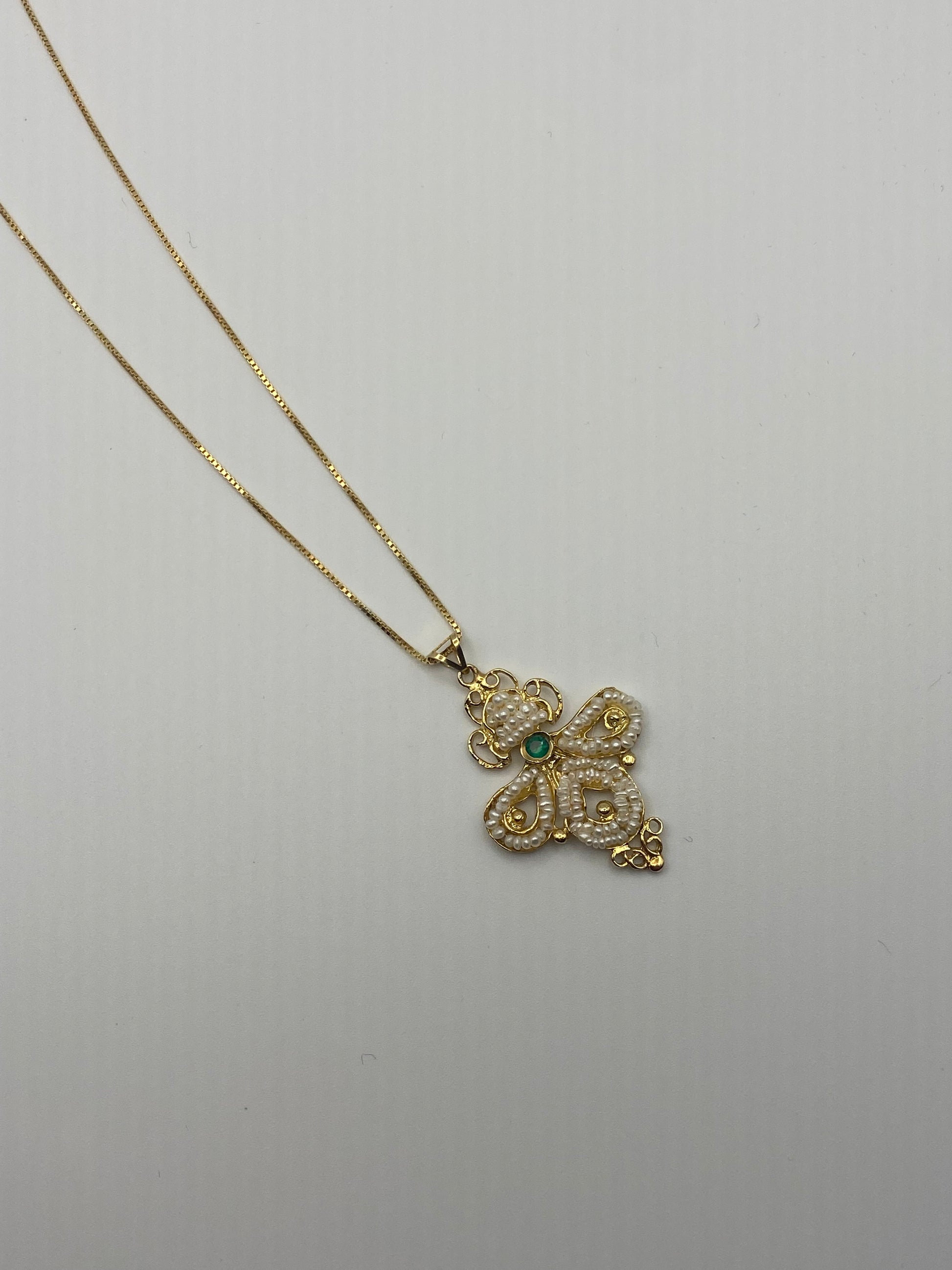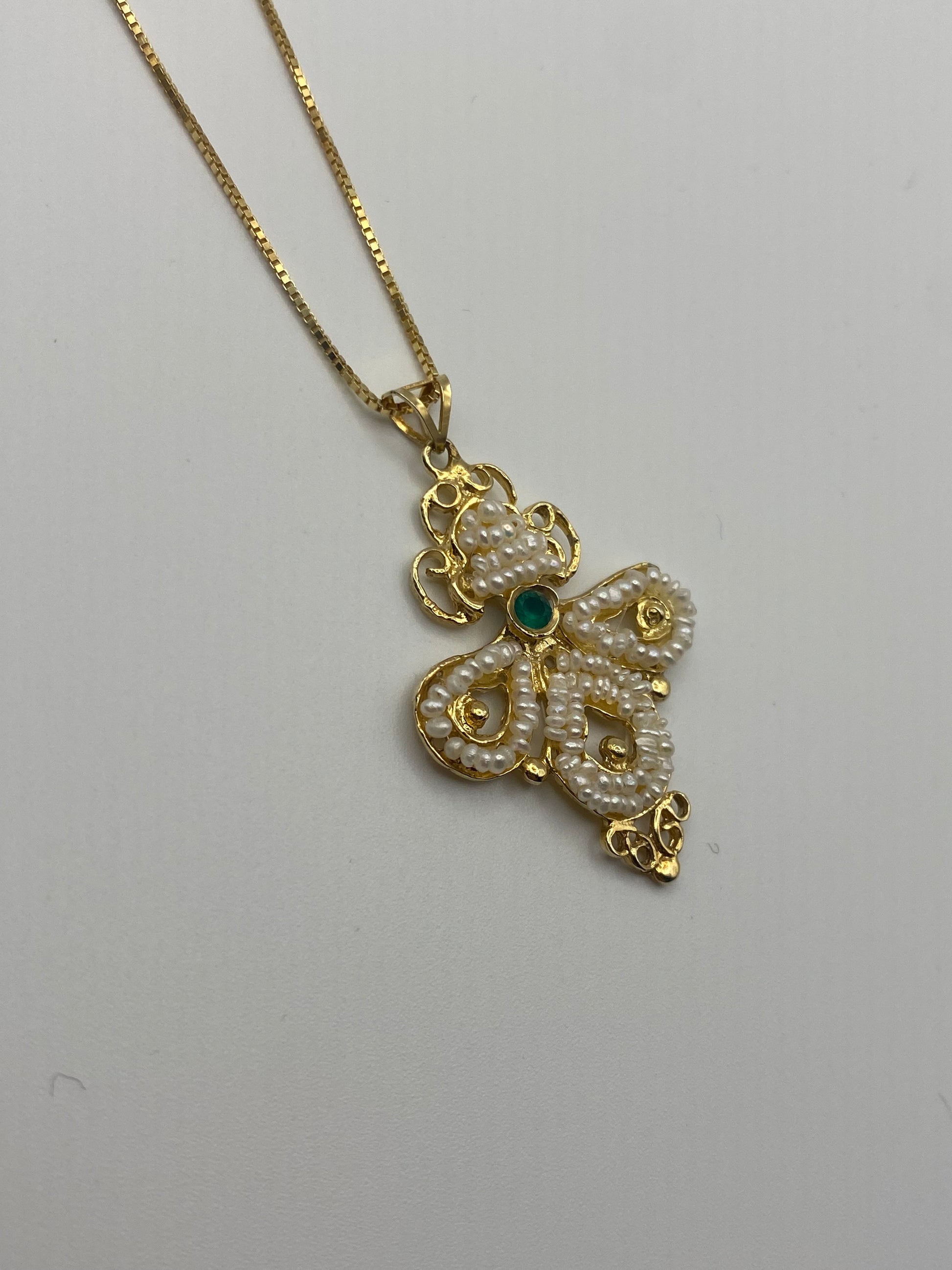 Collana con ciondolo in argento dorato, pietra Verde e Microperle